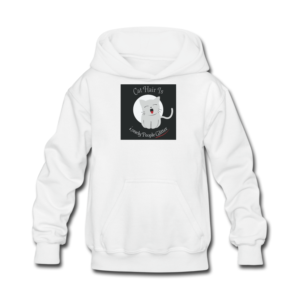 Cat Hair Is Lonely People Glitter Kids' Hoodie - white